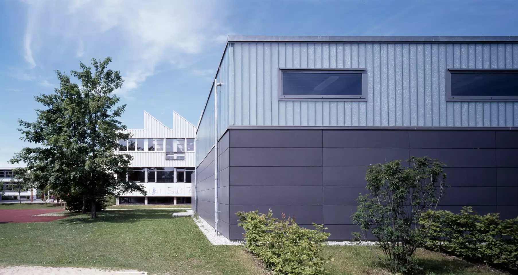 Das Gymnasium Ottobrunn wird um einen 2-geschossigen Baukörper für 16 Klassen und Kursräume vergrößert. Im Untergeschoss entsteht der große, schuleigene Theater- und Vortragssaal und am Sportplatz die freistehende Turnhalle mit Umkleiden.